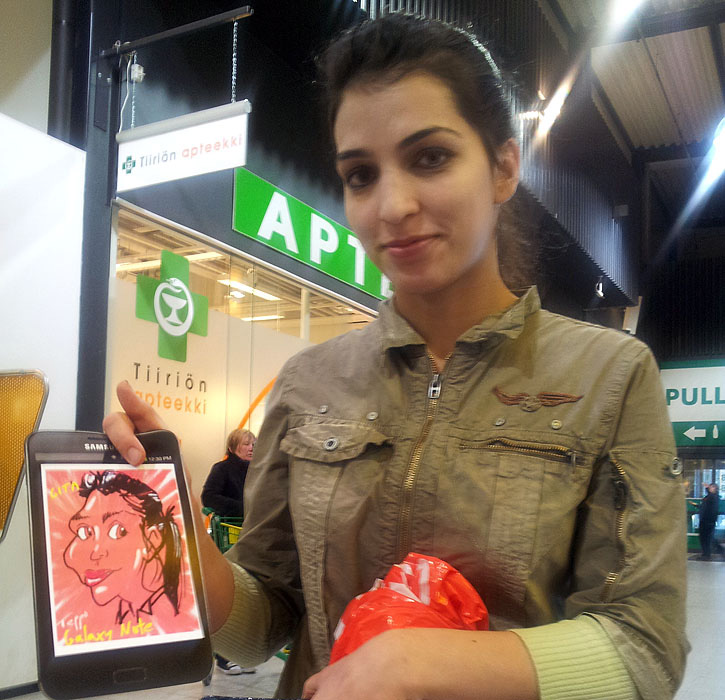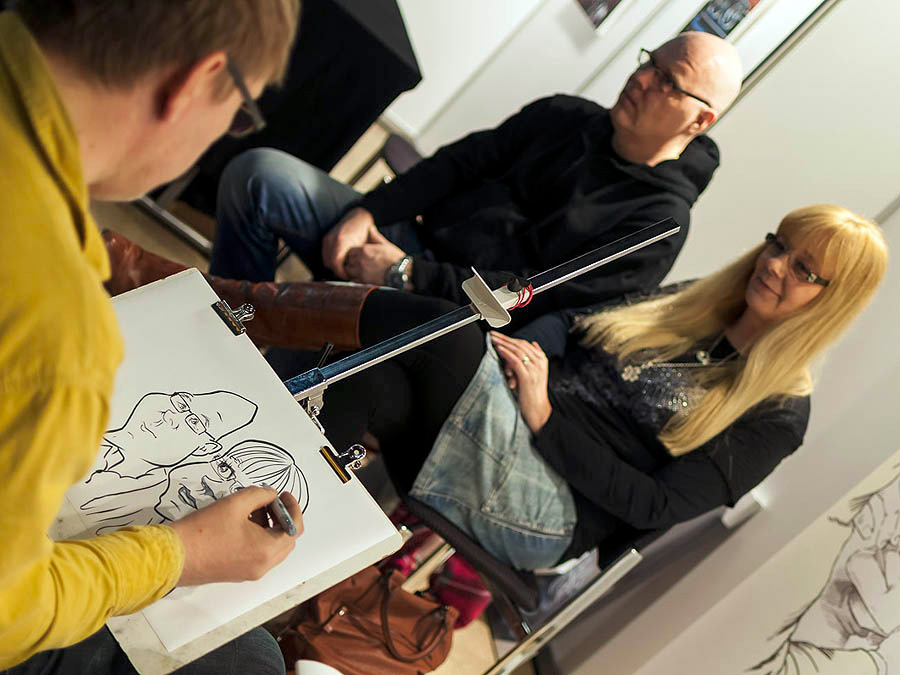 His fantastic talent has seen him become in huge demand with corporate events, wedding receptions and exhibitions throughout Finland. This caricaturist is not confined to pen and paper, using his digital tablet he can produce amazing digital caricatures right before your eyes!