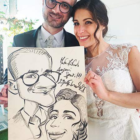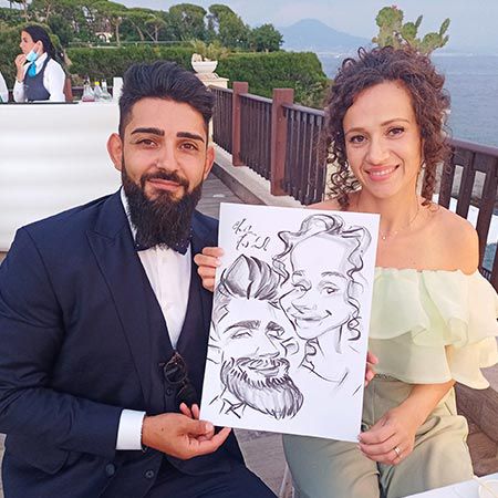 Based in Naples, our fantastic caricature artist is perfect for weddings and events throughout Italy