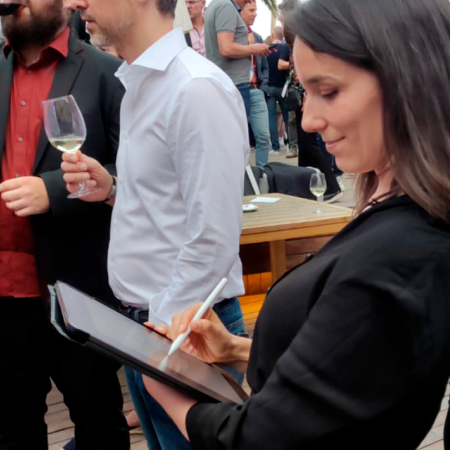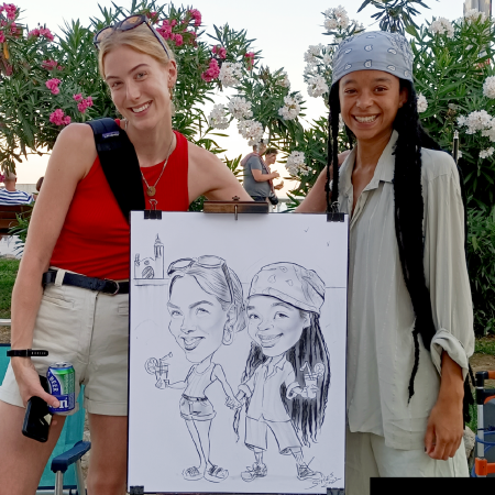 Our event caricaturist is fluent Spanish, English and Bulgarian, making her an excellent fitĀ for connecting with guests at international events