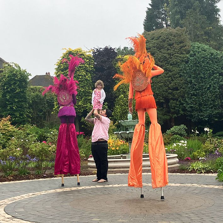 Bursting with colour, the bespoke costumes are guaranteed to attract guests for selfies and group photos. It's an act that captures the audience regardless of whether it is a private party, nightclub, stage show or shopping centre.