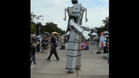 Watch as audiences fall in love with our robot stilt act, as he mingles with them and spreads joy through fun interactions and dance battles
