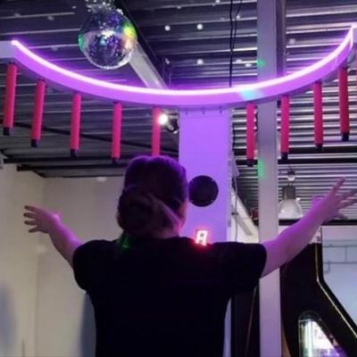 An interactive game where guests keep one foot in the circle as 10 batons fall in random order, testing reflexes and driving competitive excitement