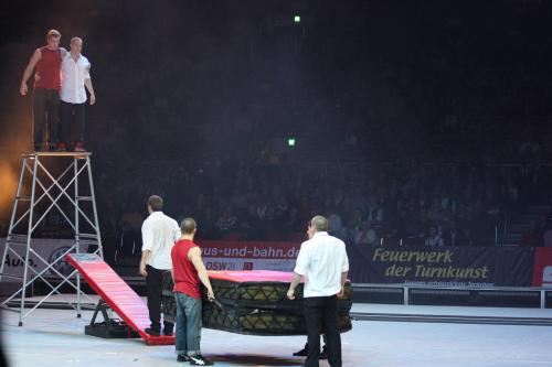 The teeterboard is an circus apparatus that propels the artists up to 9 metres high in the air, defying the laws of physics and giving them enough time to spin in all directions - over 3 times in one jump!
