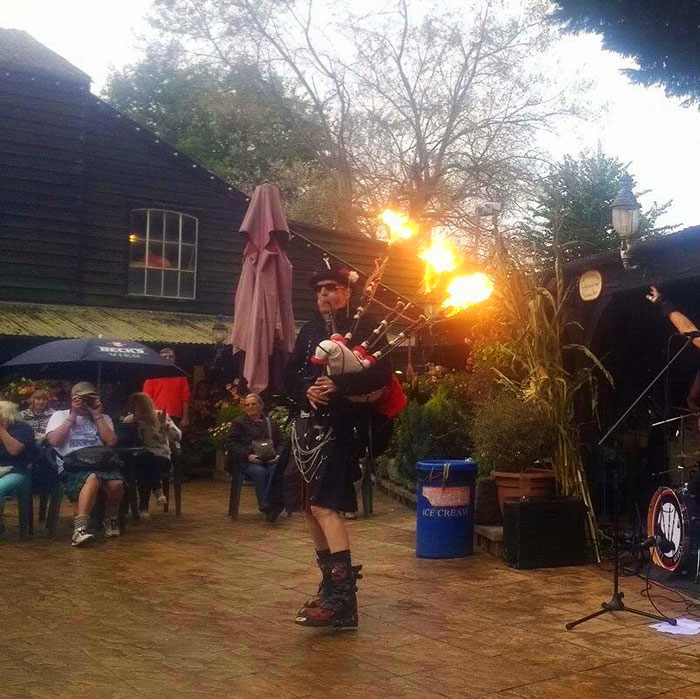 Based in the Isle of Wight, Celtic Rock Pipes provide a unique blend of well-known party covers with a traditional Celtic twist of flaming bagpipes.