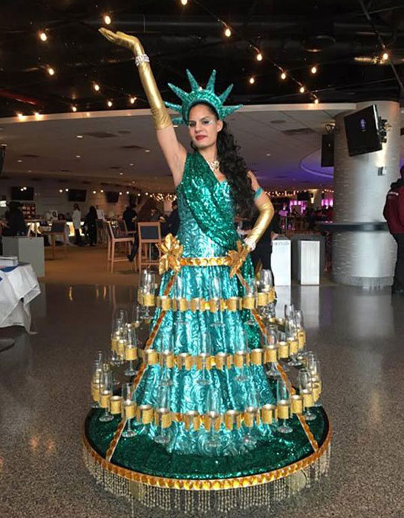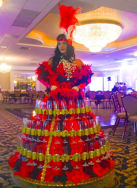 Our fantastic themed champagne dresses are the ultimate addition for your event, whether it be a private party, corporate event, gala dinner, themed occasion or everything in between, our roving champagne dress captures the attention of everyone in the room. Watch as our themed champagne dresses glide around your venue, interacting with everyone as well as keeping all of your guests’ glasses topped up. Our champagne girls are a guaranteed hit at every occasion.