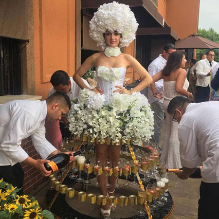 Not only does our roving champagne dress add another dynamic to your décor but it also enhances your service at your event as our champagne girls mix and mingle amongst your guests ensuring that everyone is having a fabulous time.