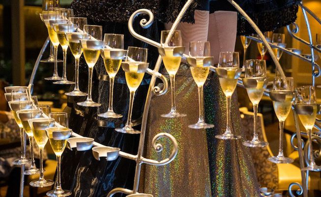 This eye-catching, champagne-dressed hostess creates a standout focal point and is a great conversation starter at any event
