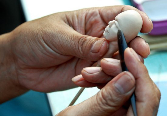 Dough modelling is a traditional Chinese folk art using sticky rice powder blended with different colours. Our dough artists use their hands and simple small tools to create little life like figurines and sculptures. The finished result is very durable. It will not crack or distort and the colour will not fade over time.