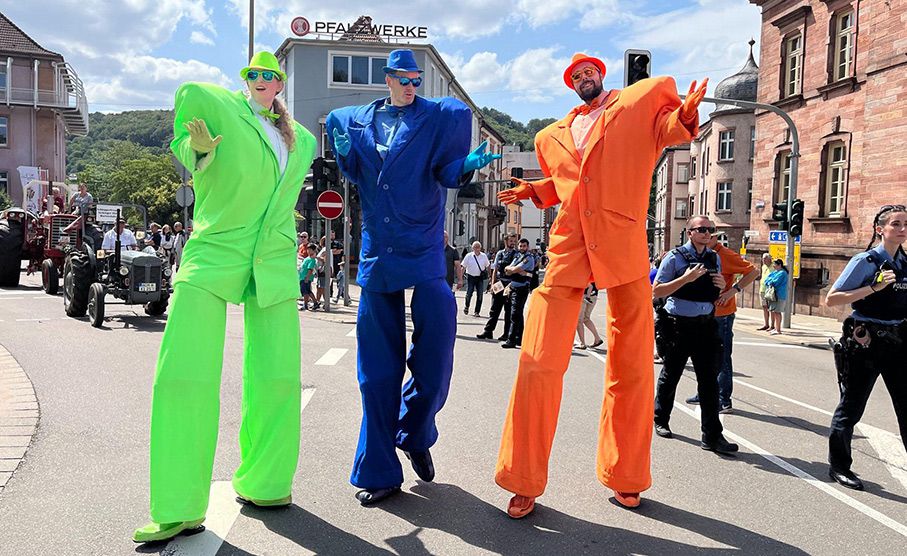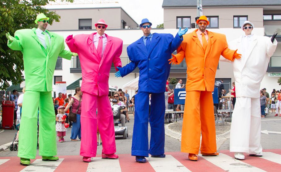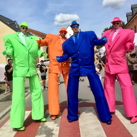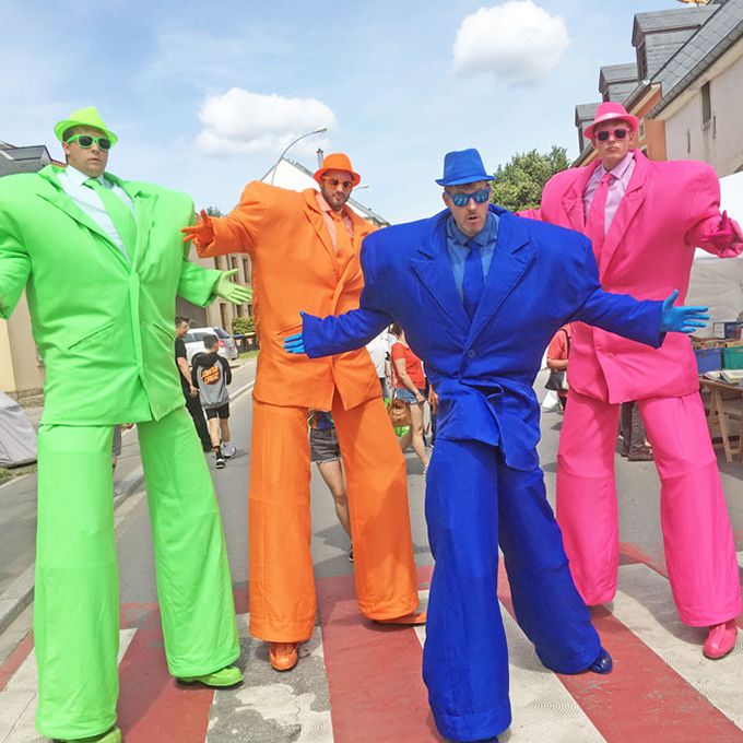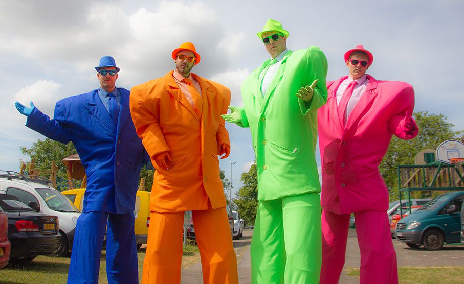 These bright and colourful stilt walker agents will be the highlight of any event with their super-sized suits and humourous hats and glasses
