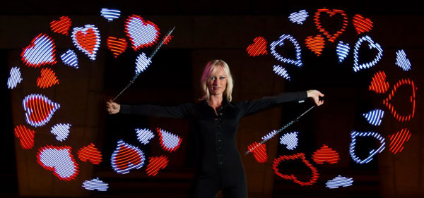 In their shows they use a combination of different light tools including traditional poi, Flow Art poi, lasers and projection, as well as other lighting and multimedia. Also experts at fire performance, the two shows can be combined for the ultimate wow factor!