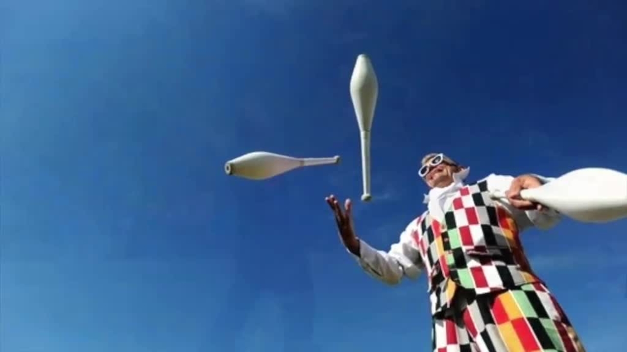 His skills include juggling, diabolo, hula hoop, fire or hat juggling, unicycling and even tight rope. He can also offer workshops