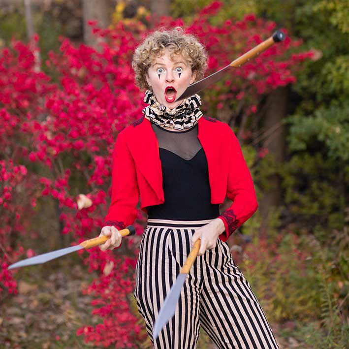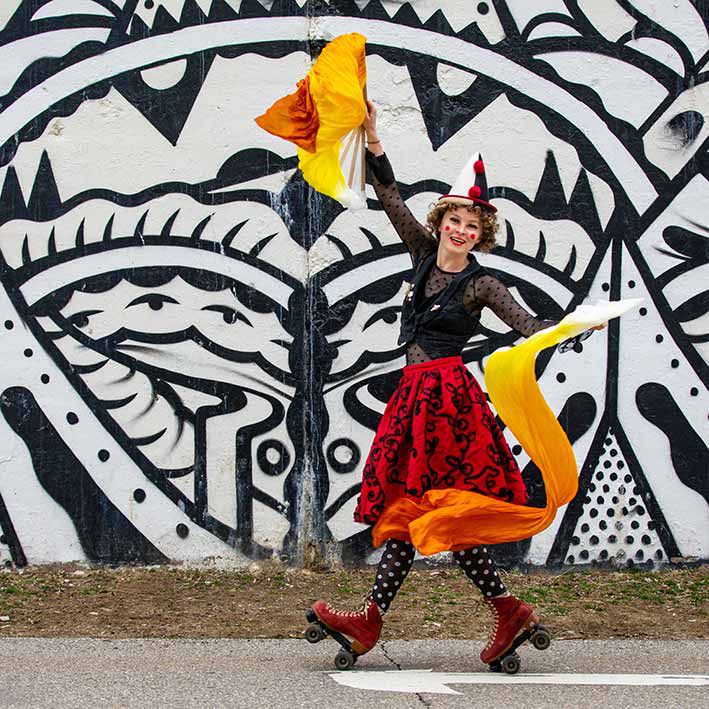 One of only a few performers who can juggle and rollerskate simultaneously, our female act dresses in a variety of colourful costumes