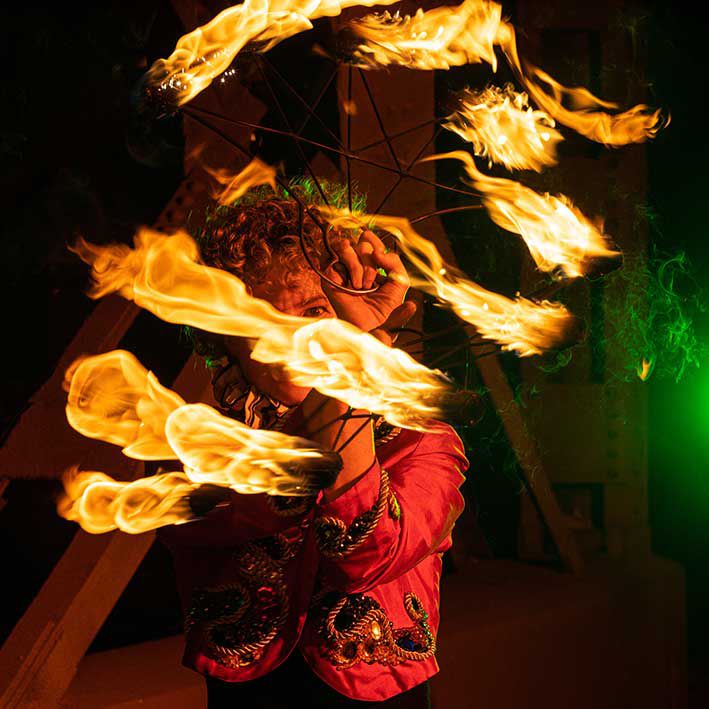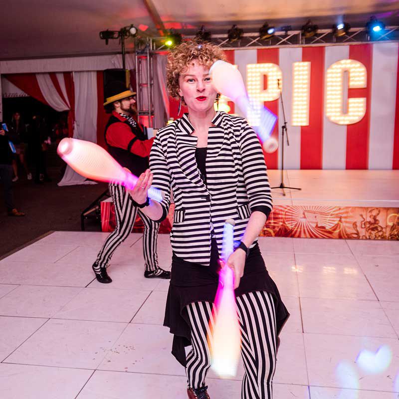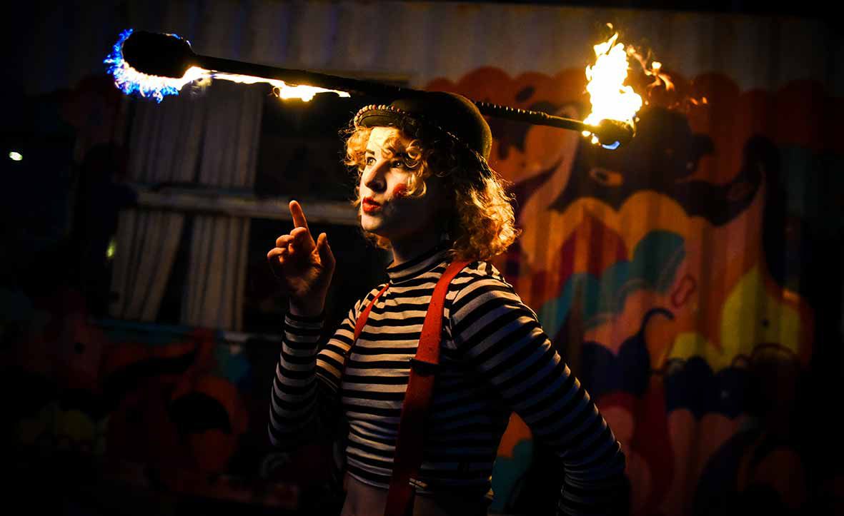 A highly versatile roaming or stage-based circus act that combines a number of skillsets to create a vibrant and entertaining show