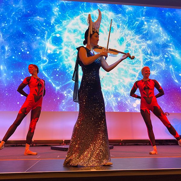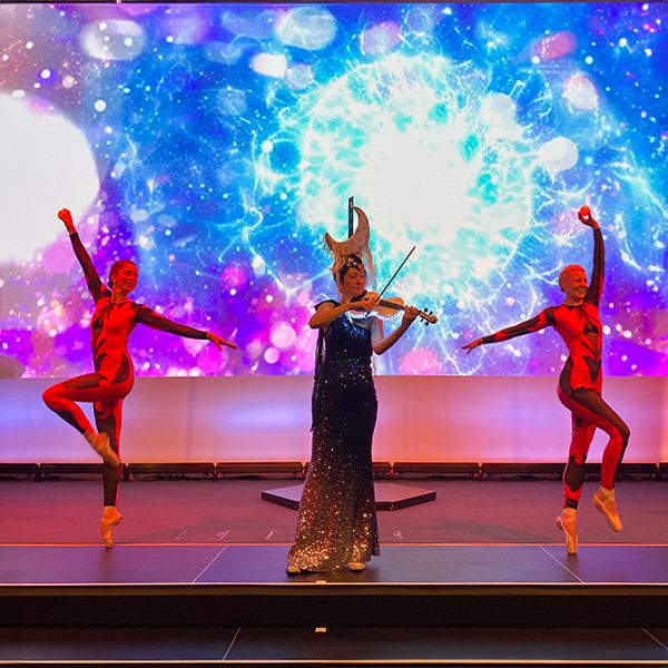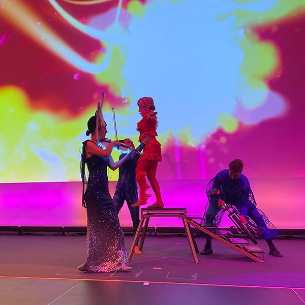 The Circus of Colours Show is a breathtaking spectacle that seamlessly blends live performances of acrobats, contortionists, hoop artists, tricycle artists and more with stunning digital screen content. Each act matches with vibrant, swirling screen content colours, creating a mesmerising visual experience that captivates audiences. This show can be customised to incorporate brand logos and themes, ensuring a personalised and impactful performance bespoke to the needs of your event!