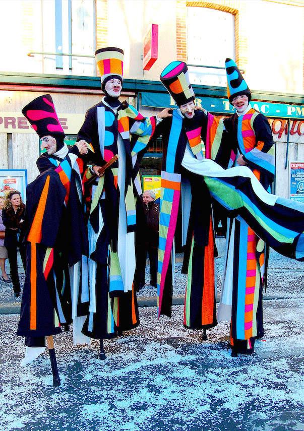 They offer bespoke performances with five to twenty-one artists including stilt walkers, acrobats, jugglers, an orchestra and giant unicycles. They are the perfect act to enliven streets and festivals.