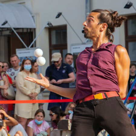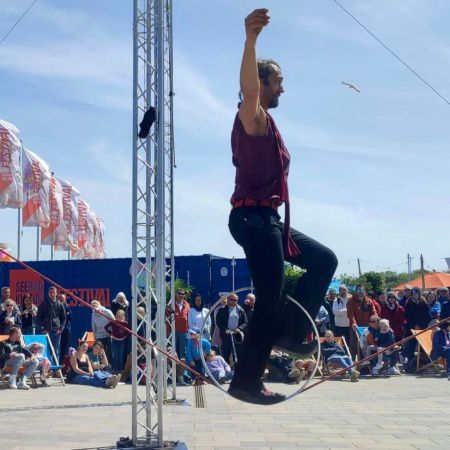 Our award-winning circus artist has been performing at street festivals and events throughout Europe, Asia, and the Middle East for over 20 years
