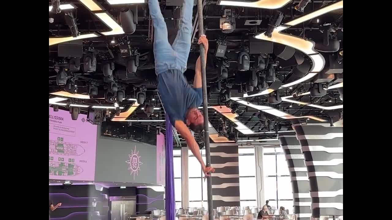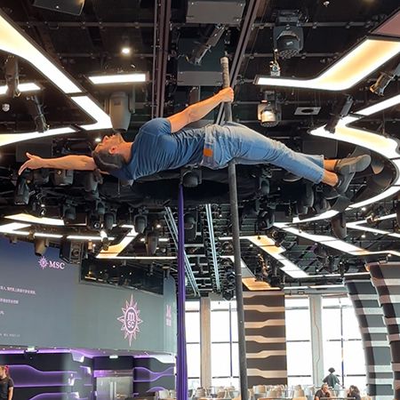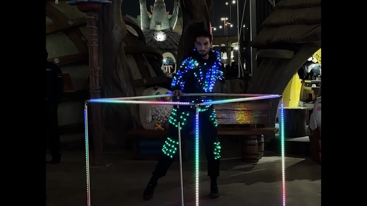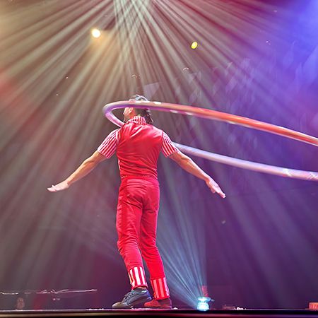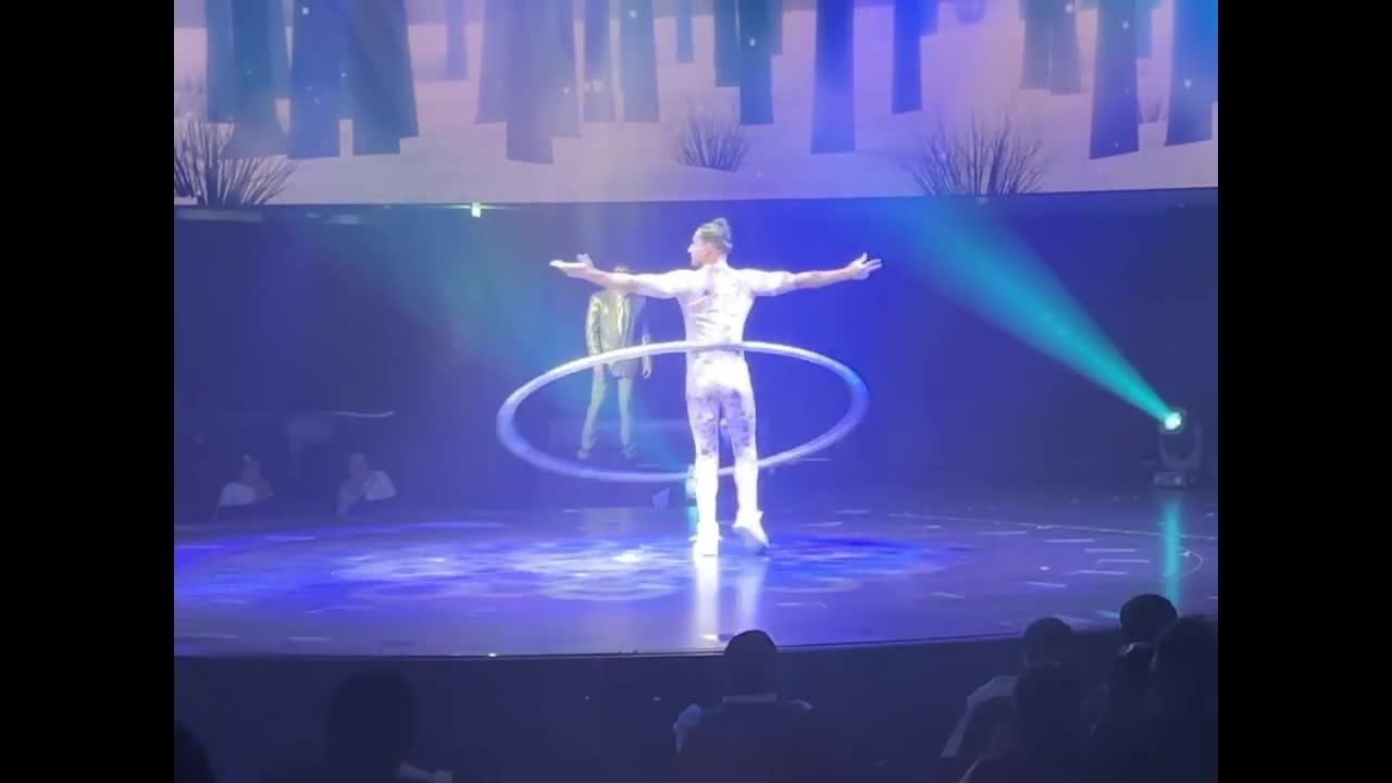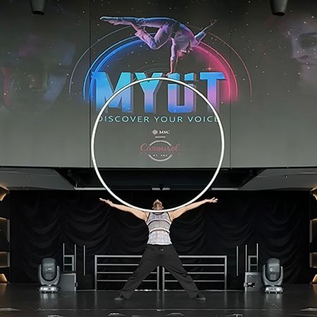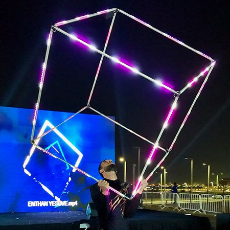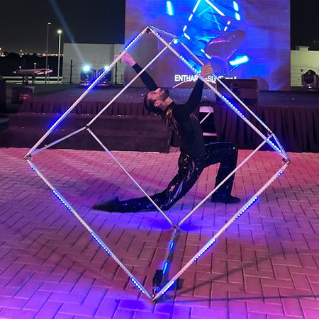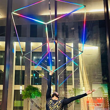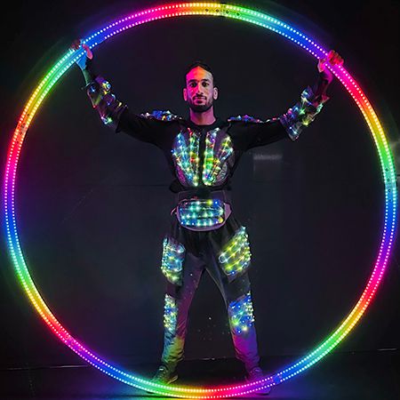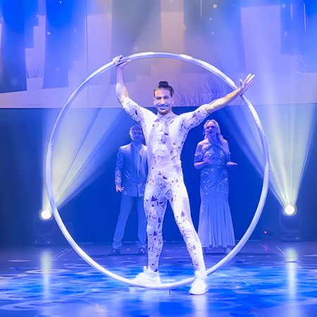 Fluent in English and French, this male circus performer offers LED cube juggling, acrobatics, cyr wheel, Chinese pole, and solo or duo acrobatics