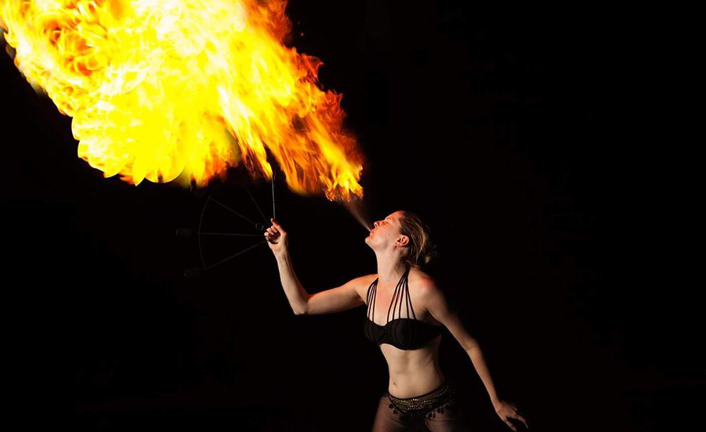 Amaze your guests with a fire show with options including fire breathing and eating, dragon staff, fans, hoop, whip and poi