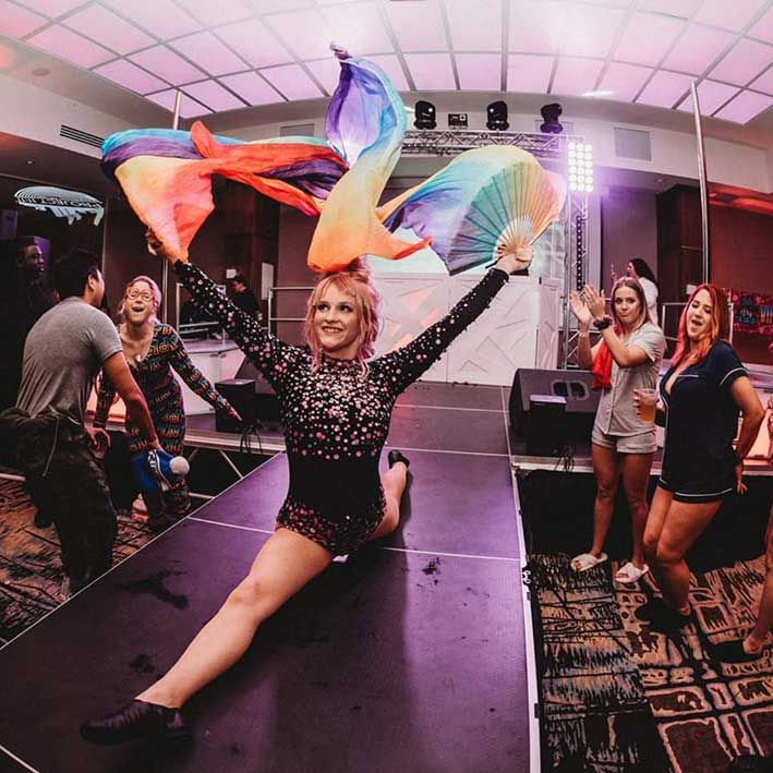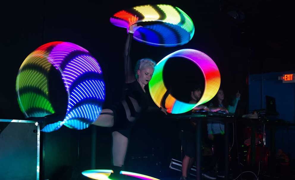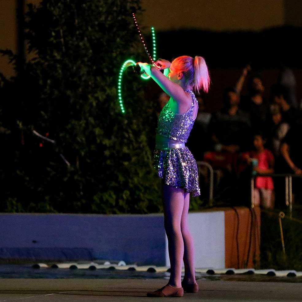 Day time performances include hoop, dragon staff, poi and silk fans, or light up the night with LED poi, hoop and pixel whip shows