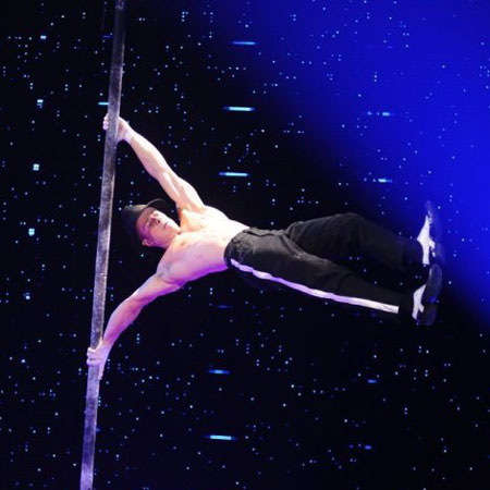 Our Polish born acrobat performer and graduate of the Krakow Academy of Physical Education has achieved huge acclaim in the field of speed climbing. 2011 World Cup Champion, 4 times winner of the Polish Cup and twice named Polish Champion, this extremely talented rock climber has built a career as a professional performance artist, combining his world-class climbing talents with a passion for gymnastics. His performance style, known as the “human flag” has seen our artist achieve world-wide recognition. Performing amazing holds, spins and acrobatics in his unique act, our gymnast gained further renown after performing his custom made acrobatic pole dance on Poland’s Got Talent.