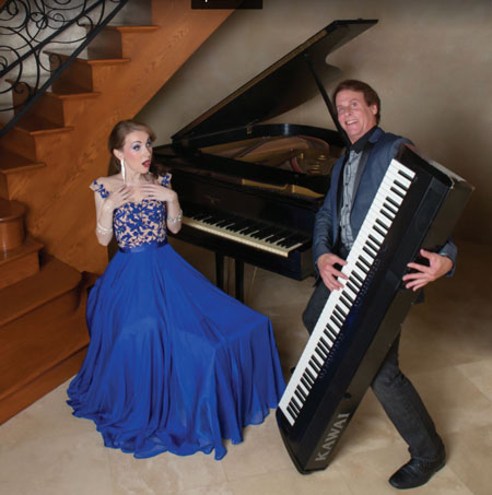 Having performed as a duo in elegant private homes and small intimate venues, our duelling pianists growing repertoire and expanding creativity has enabled them to perform in larger venues for high end clients such as showcasing a gala performance at the 1100 capacity Venice Performing Arts Center in Venice, Florida. A Class Act Piano Duo that features a rich and eclectic international repertoire in addition to a stunningly diverse blend of musical styles and comedy routines that are highlighted by piano duets on both one and two pianos as well as being supported by a live band.