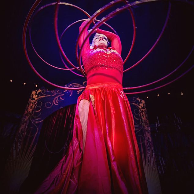 With 20+ years in acrobatics and performance, she has wowed audiences across all 50 states and abroad with her signature acrobatic hula hoop acts