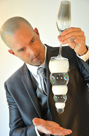 Are you looking for an interactive entertainment option to impress guests at your upcoming party, gala dinner or special occasion? Then look no further! This extraordinary Close Up Bubble Magician will dazzle people with his mind-blowing bubble tricks and his charming personality.