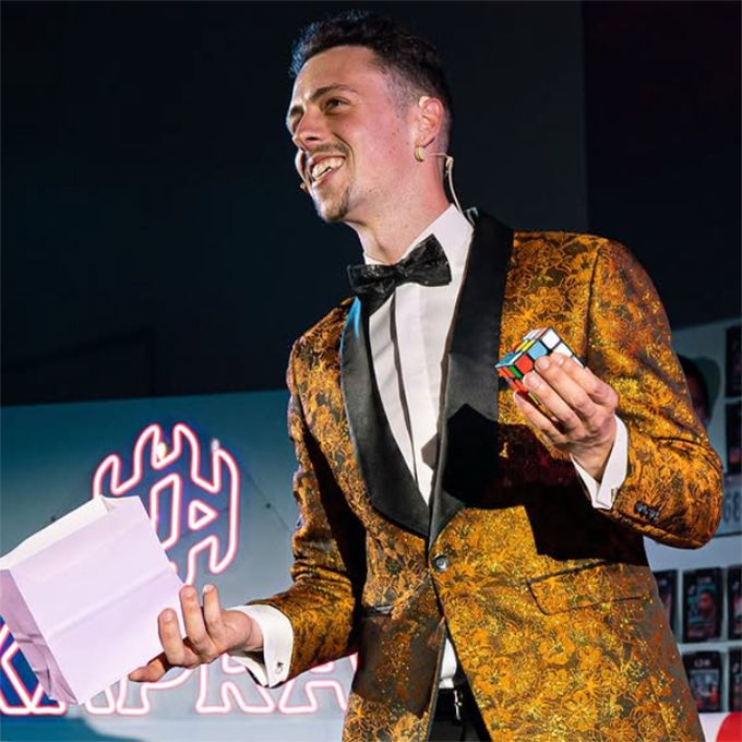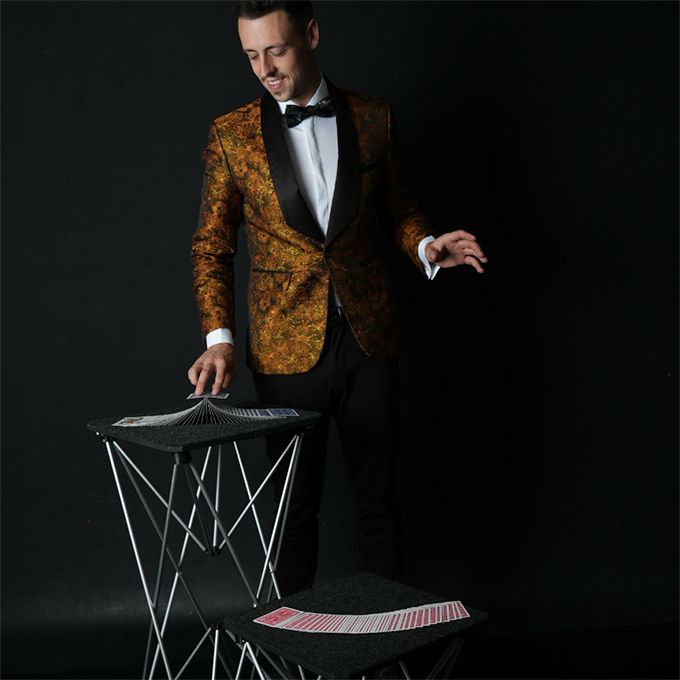 Adaptable for themed events like casino nights or elegant Great Gatsby–style parties, he tailors the magic to match the atmosphere and event style
