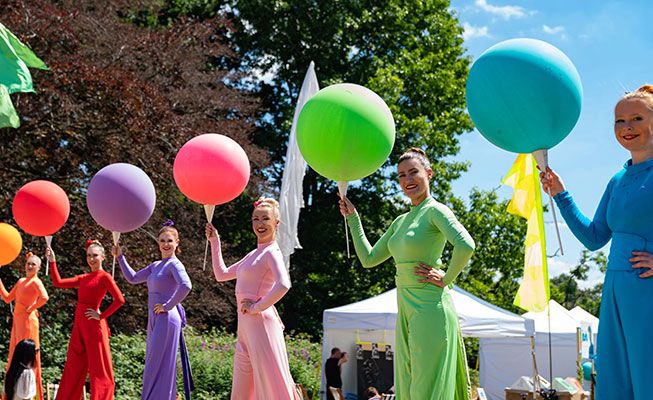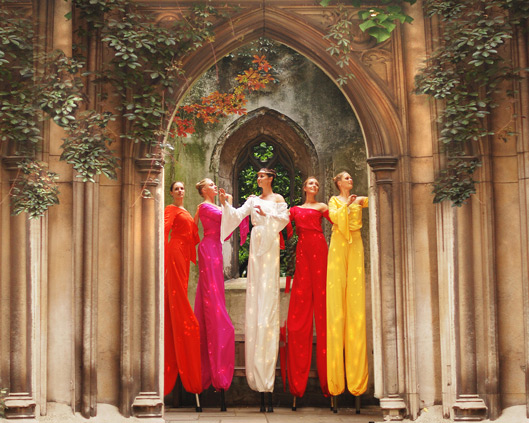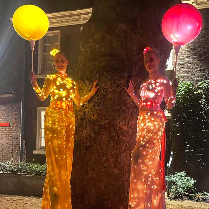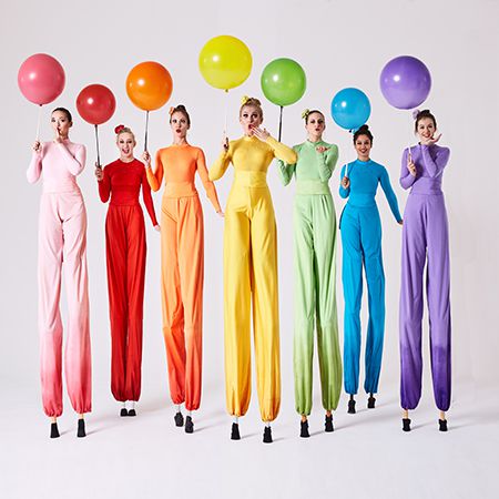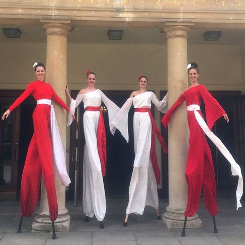 Adaptable as ever, they can be styled and accessorised to suit a huge range of themes, they can also perform with flags, lights and ribbons, either on stilts or on foot.