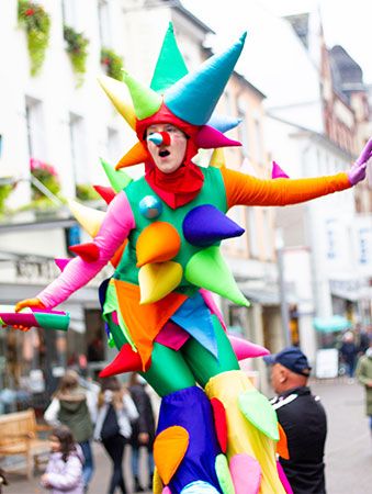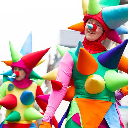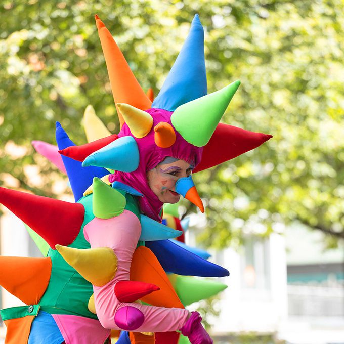 The ideal walkabout act for festivals, colourful circus themes, parades, children's or private parties, summer corporate celebrations and more!