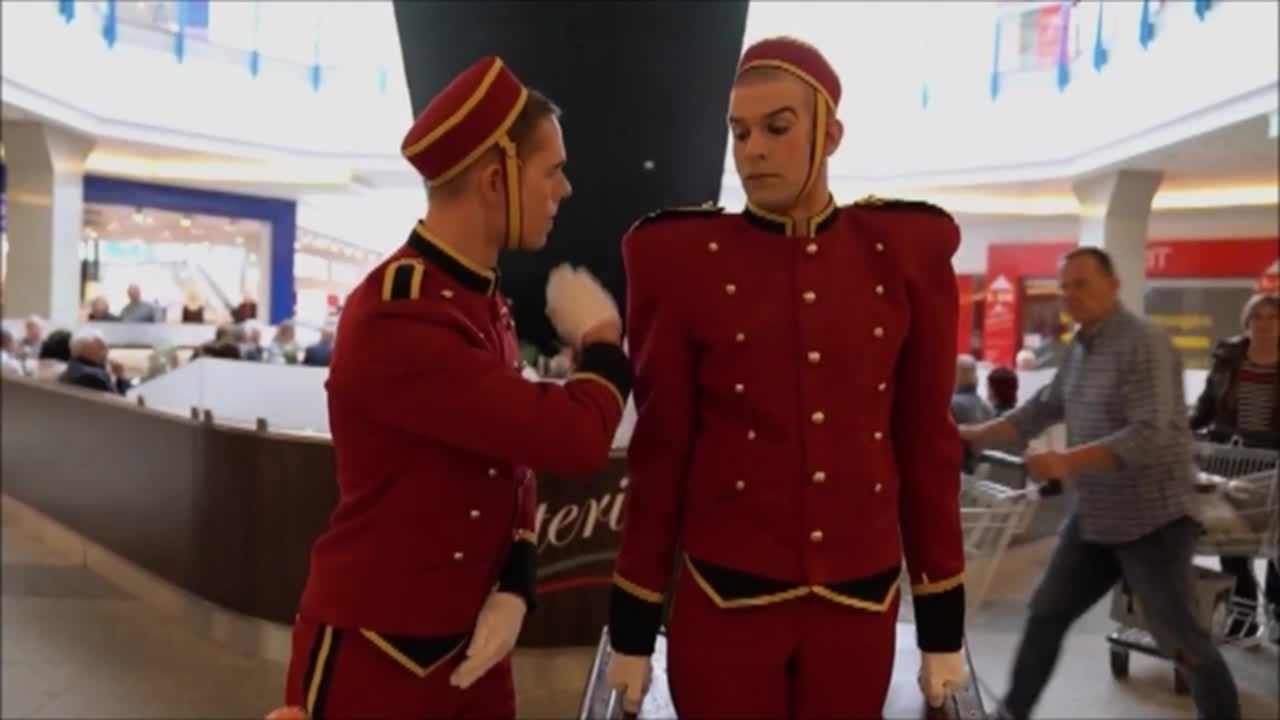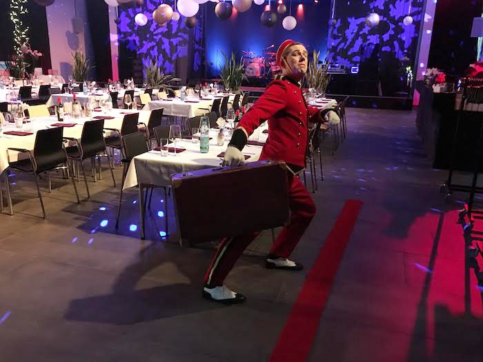 Our comedy bellboy duo wears a classic red uniform fully inspired by the original. This uniform became popular thanks to big hotel chains such as Hilton, Adlon or Interkontinental. Our performers can also wear other uniforms and costumes to become butlers, lift boys or any bespoke character that fits your theme!