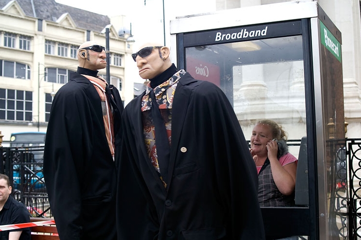 Comedy Bodyguards are a France based duo that have been providing amazing walk-around entertainment worldwide. Using stilts and dressed as executive bodyguards, these guys with "small heads" are instant hits in crowded areas and public places.