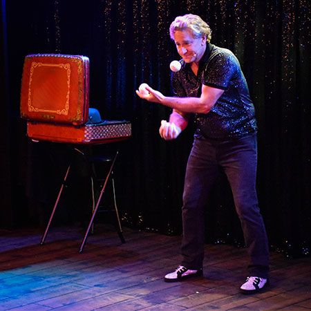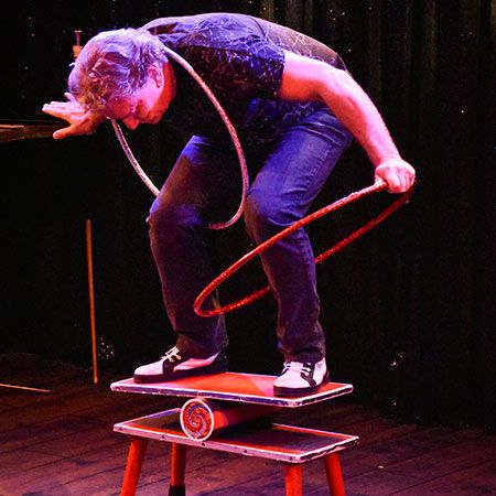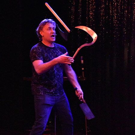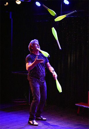 Truly bringing juggling into the 21st Century, this comedic performer uses a variety of props including clubs, hoops and even shot glasses