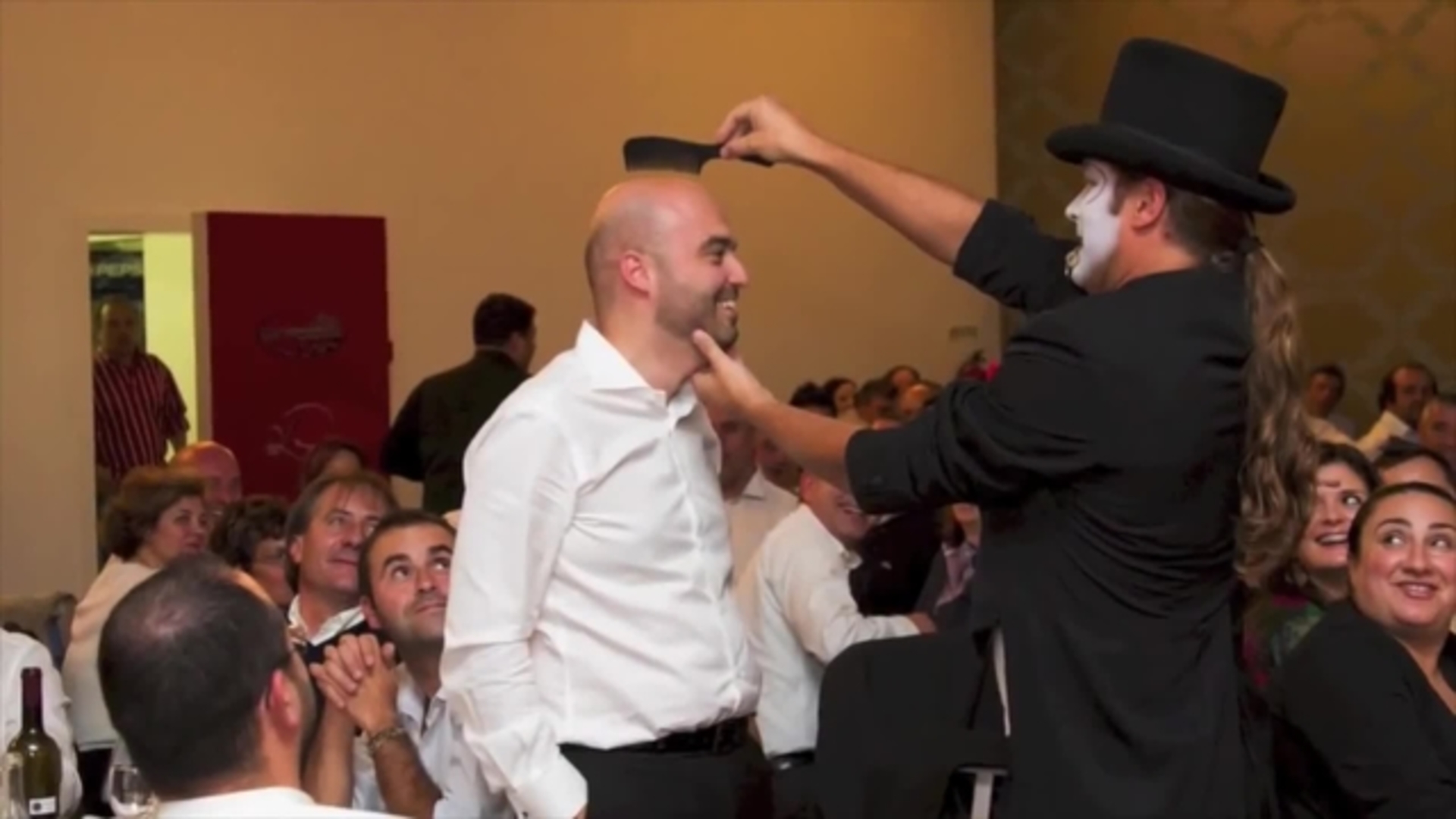 The Comedy Clown also offers a Stage Show: There are two possibilities: 30 or 45-minute shows, which will vary according to requirements. Composed of various numbers of hilarious and current illusionism, with strong scenic impact, magic tricks and comedy the audience, which may participate throughout the performance are adapted. The mime, improvisation, interactivity and humour make this a remarkable performance for those who watch this show.