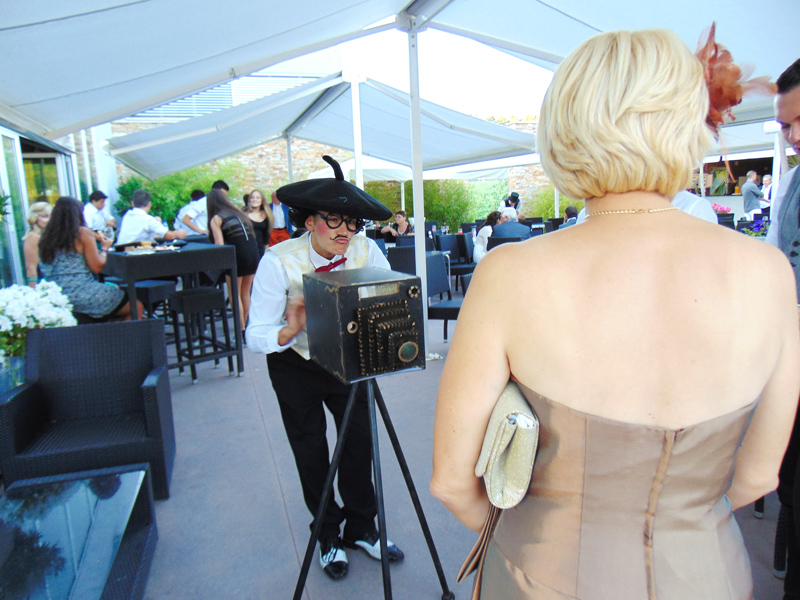 Loved by both children and adults alike, our vintage walkabout caricaturist and stilt walker will roam around your event interacting with guests and offering to take a picture of them. Those who’d like to be immortalised by our ‘photographer’ will have to pose using the frame our stilt walker holds as a reference. Once the photo is taken, they will only have to wait a couple of minutes until it is printed to discover the photo is in fact a caricature!