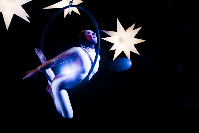 Treat your audience to a little stargazing with our stunning Constellation Hoop Act. Combining giant luminous stars that form an aerial mobile, our talented artist performs aerial acrobatics that is guaranteed to leave guests spellbound.