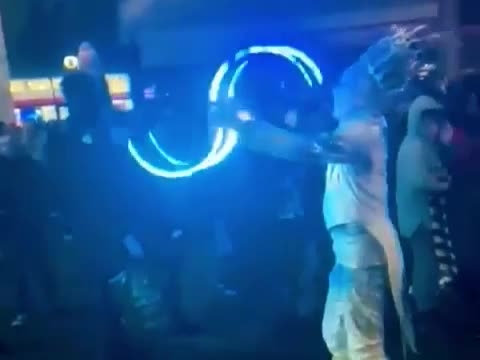 In addition to contact juggling our performer is a skilled flow artist using isolation techniques to manipulate buugeng, hoops and eight rings to create hypnotizing optical illusions.