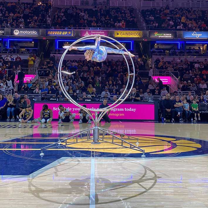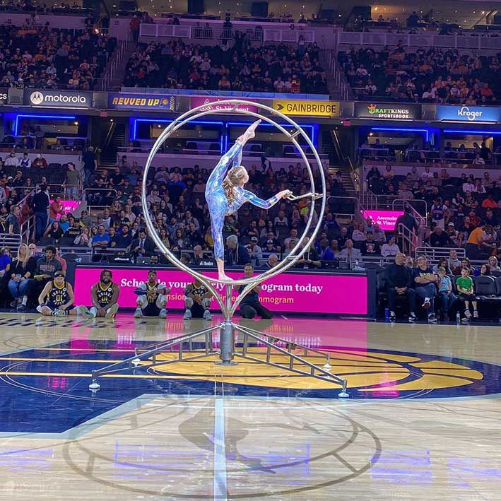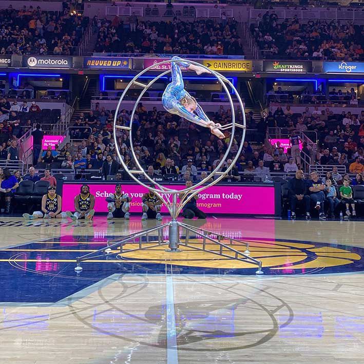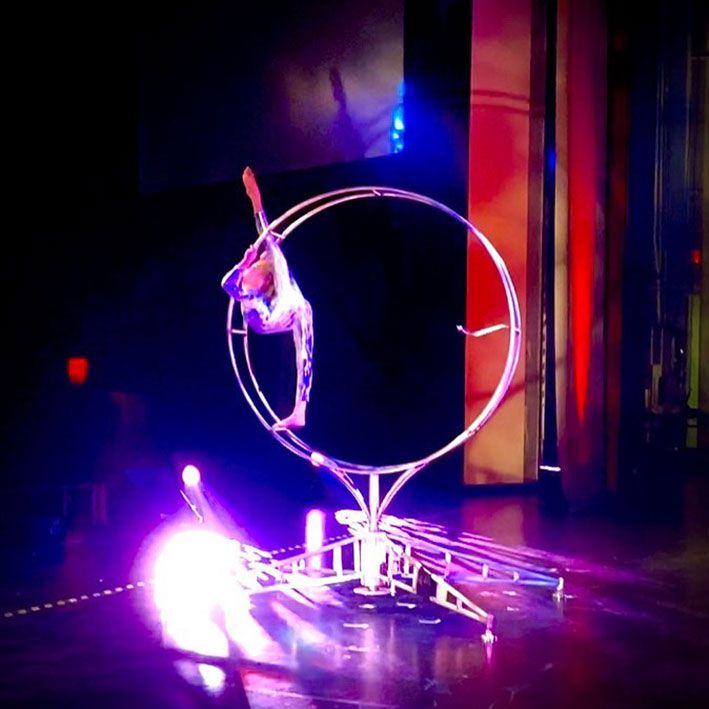 Our incredible performer combines the art of contortion and aerial within a hoop structure to create a truly unique act