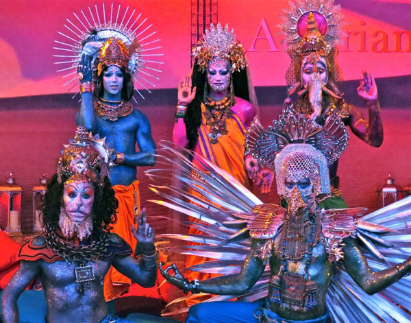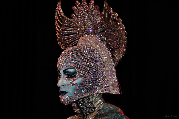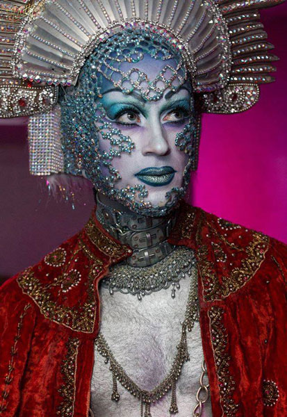 His most popular looks include: Hindu deities, tribal, dungeon / fetish, Halloween / horror, flowers, crystal and showgirls.