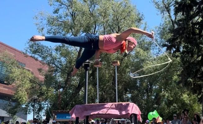 Book this country circus show! Delight guests of all ages with a one-woman act featuring rhythmic acrobatics, witty banter, and country-style comedy