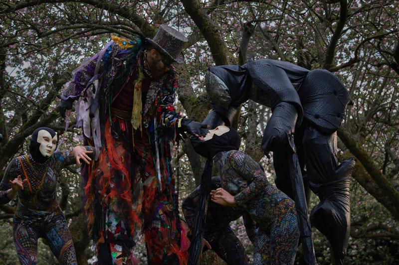 This deranged ringmaster towers high above the crowd, leading strange and otherworldly creatures in his wake, perfect as a Halloween walkabout or as dark entertainment for a range of events.