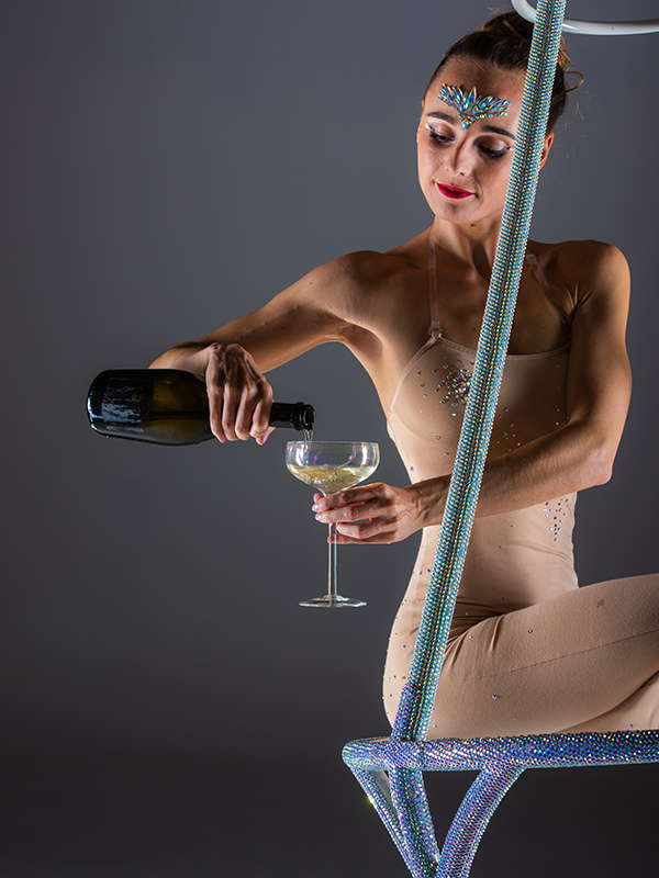 This versatile apparatus can either hold one or two aerialists to maximise the quantity of champagne poured at your event