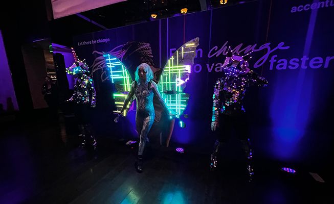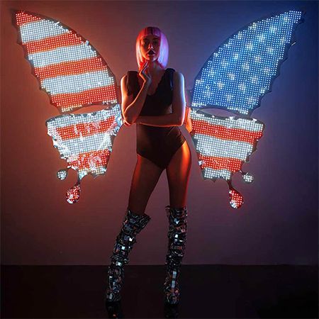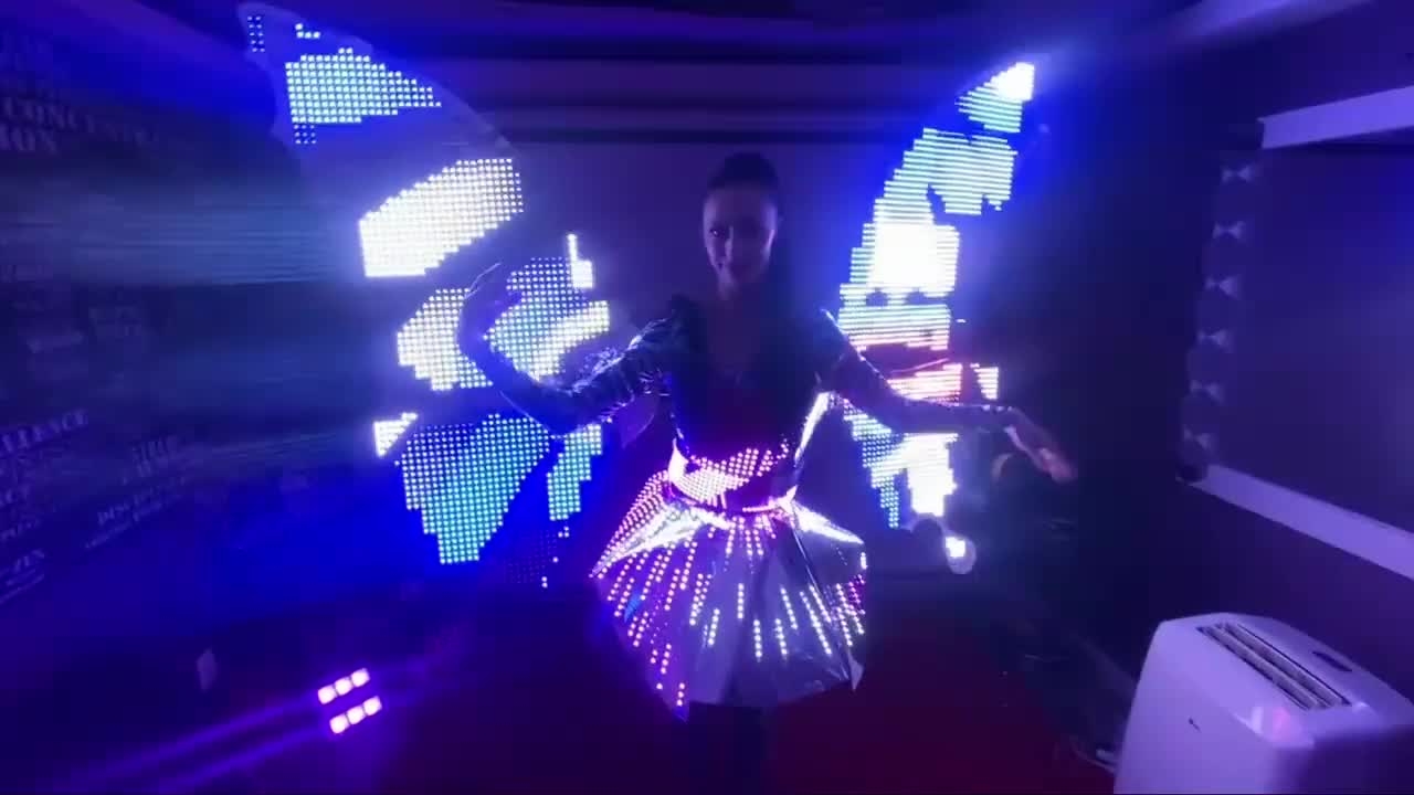 Book a dazzling LED wing act to elevate your event with enchanting themed models, high-tech visuals, and a touch of futuristic elegance