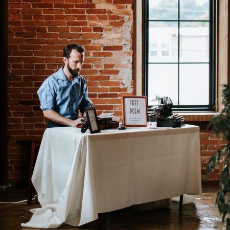 This event artist creates personalised poetry for your guests on-site as an incredible keepsake to remember the day by