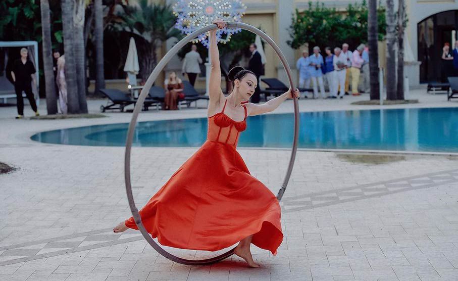 Based near Lake Como, our Cyr wheel artist can be booked for corporate events, parties and activations, across Italy