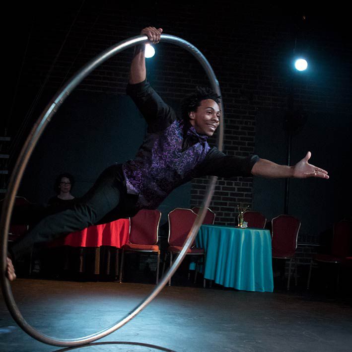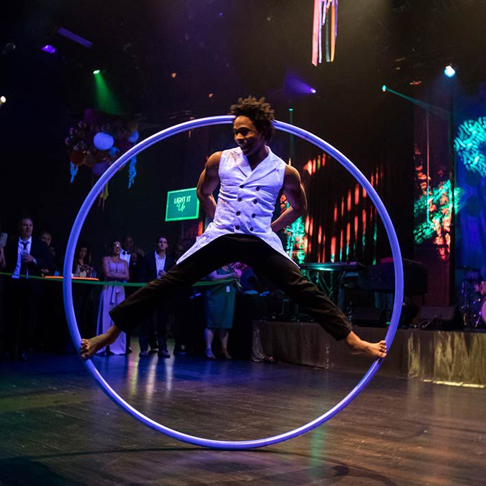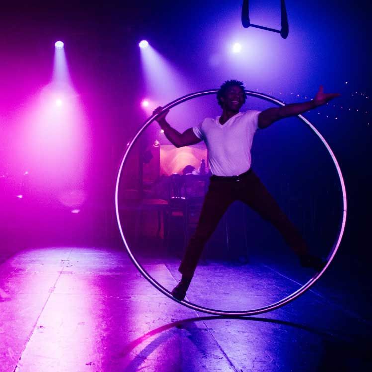 His displays showcase strength, grace and agility, as he spins across the stage via a 6ft steel ring; these dynamic shows amaze audiences