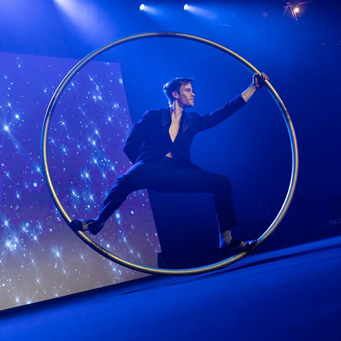This Cyr Wheel act is a graceful and captivating acrobatic discipline that can be performed alongside other acts or as a stunning solo show