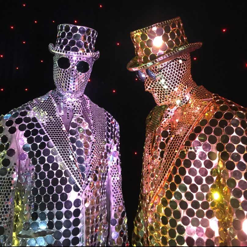 Perfect for a range of events, our mirrored performers will dazzle in the sunlight and mesmerise under artificial light. They can even able to turn into human mirror balls with a rotating podium and colour changing LEDs for added wow factor!