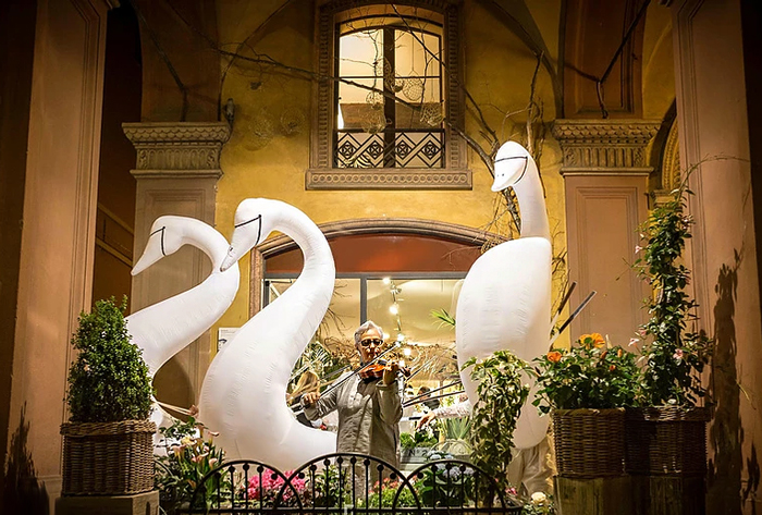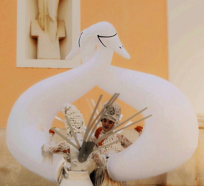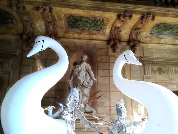 These incredibly majestic dancing swans are an eye-catching addition to any event or special occasion and guarantee to capture the attention of guests and onlookers. Our three walkabout swans are unlike anything you have ever seen before and especially good for white themed entertainment. The act consists of a trio of performers. The exquisitely costumed princes manipulate stunning silk swan sculptures to create a beautifully danced choreography.