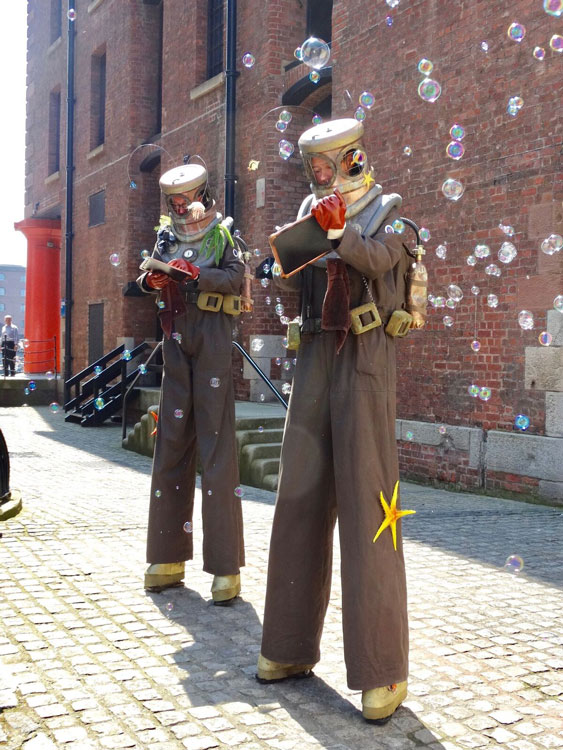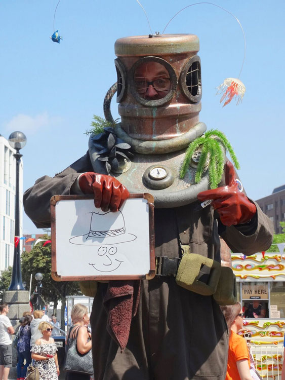 A hilarious maritime act who not only wonders around your event communicating by means of wipe board but these roaming stilt walkers squirt water out of their helmets, blow bubbles and play wonderful undersea soundtracks that are both amusing and therapeutic.